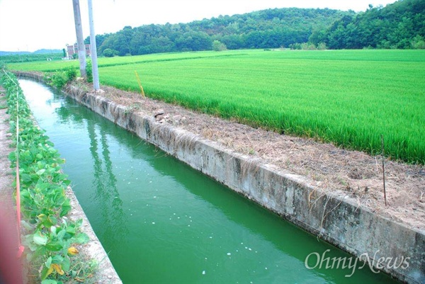 지난해 여름, 금강 양수장에서 취수한 강물이 농수로를 통해 농경지로 유입되고 있다.ⓒ 김종술