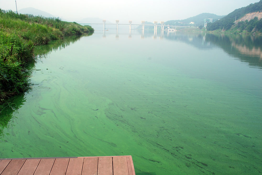 4대강 사업 이후 공주보에 녹조가 발생하였다. 지난 2015년에는 호주의 국영방송이 취재를 올 정도로 심각한 상태였다.ⓒ 김종술