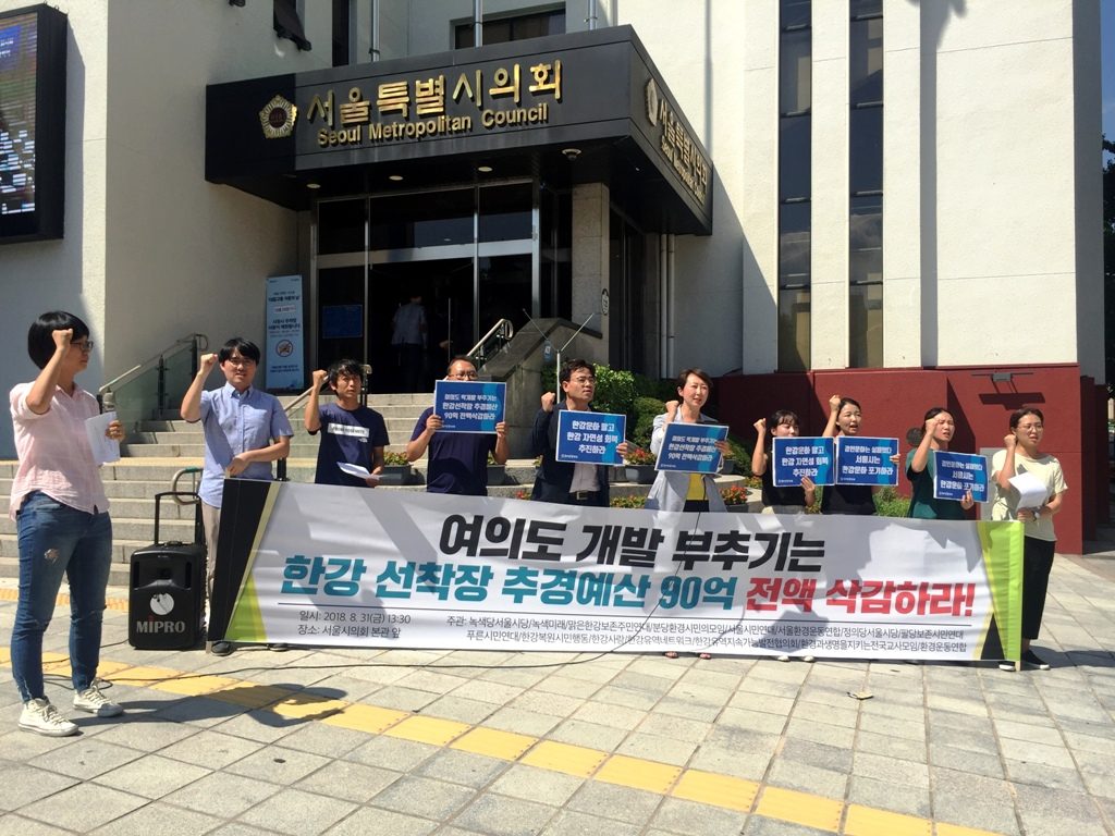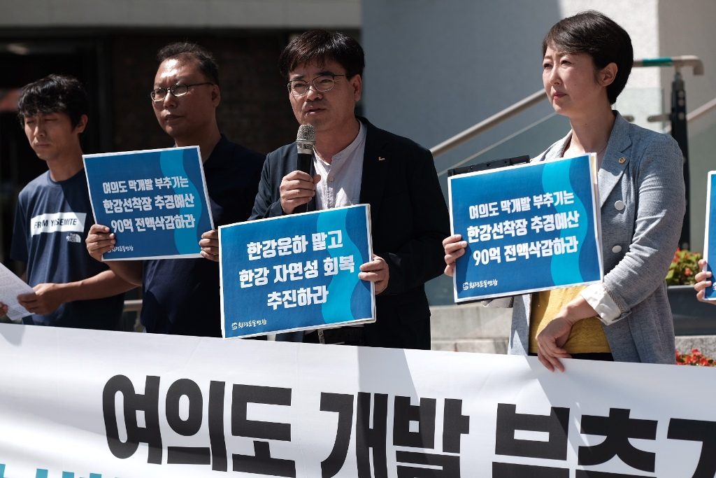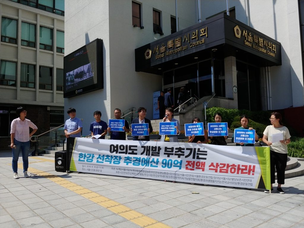 시민사회단체들이 박원순 서울시장의 여의도 개발을 규탄하며 한강선착장 개발을 위한 추경예산 30억 원을 삭감하라고 요구하고 나섰다.