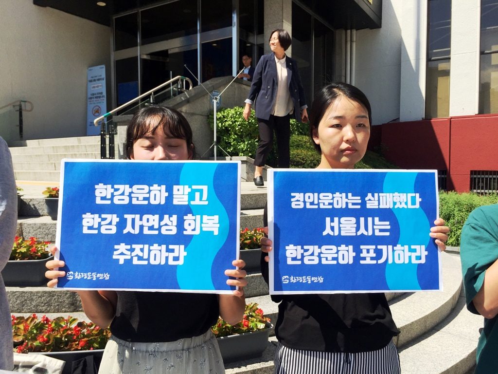 신재은 환경운동연합 생태보전국장은 “오세훈 전 시장의 한강르네상스 사업을 반대한 박원순 시장이 그 사업을 그대로 이어받고 있는 셈.”이라며, “정부에서 4대강복원, 부동산투기와 싸우고 있는데 한강개발을 하겠다는 것은 정부의 발목을 잡는 것.”이라고 강조했다. 이어 “서울시의회에서 한강선착장 추경예산을 삭감하고, 한강 복원 논의에 적극 나서야 한다.”고 주장했다.