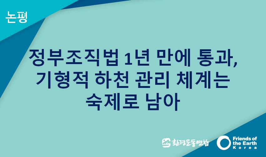 정부조직법 1년 만에 통과, 기형적 하천 관리 체계 숙제로 남아