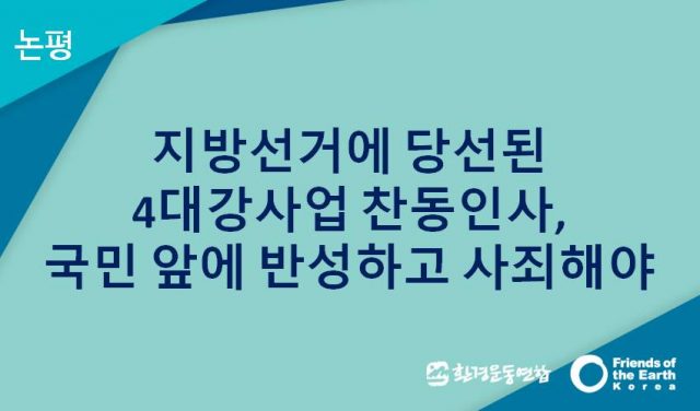 지방선거에 당선된 4대강사업 찬동인사, 국민 앞에 반성하고 사죄해야