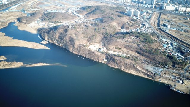 화원동산 전경. 저 하식애 앞으로 대구 달성군이 탐방로 공사를 진행 중이다. ⓒ 정수근