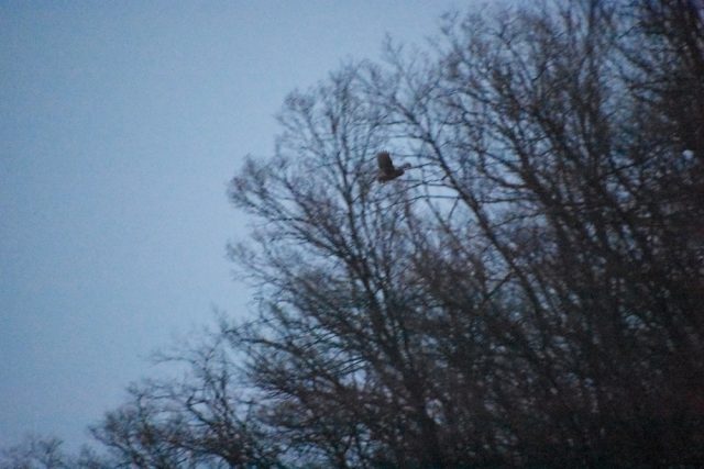 수리부엉이가 해가 진 직후 화원동산 하식애 둥지에서 날아오르고 있다ⓒ 대구환경운동연합 정수근