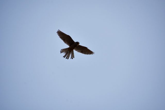 화원동산 하식애 창공 위에서 만난 황조롱이의 모습이다. 사냥감을 포착 정지비행을 하면서 먹잇감을 내려다보고 있다. 황조롱이는 천연기념물이자 멸종위기 야생동물2급종으로 문화재청과 환경부가 함께 보호하고 있는 법정 보호종이다. ⓒ 대구환경운동연합 정수근
