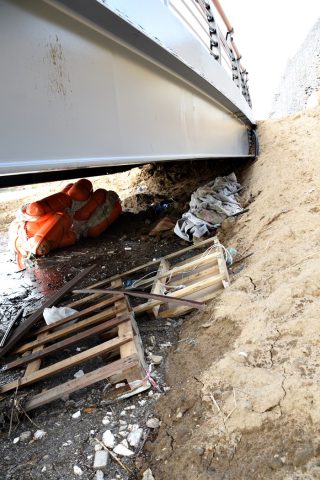 눈에 보이지 않는 탐방로 다리 밑에는 공사용 쓰레기들이 널려 있다. ⓒ 대구환경운동연합 정수근