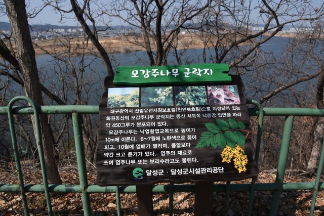모감주나무 군락지를 산림유전자보호림으로 지정해 보호하고 있다는 표식을 떡 하니 세워두었다. ⓒ 대구환경운동연합 정수근