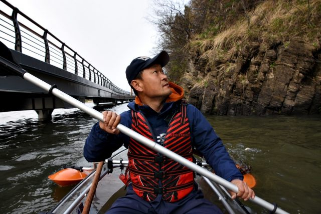 활동가가 추가 취재를 위해 투명카약을 타고 하식애 일대를 둘러보고 있다. ⓒ 대구환경운동연합 정수근