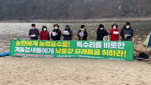 영남지역 환경운동연합 활동가들은 그럼에도 불구하고 농성장을 지키고 있다. 3월 말까지 수문 개방을 연장할 것을 촉구하면서 말이다. 그래서 이날 오후에 이들은 현장에서 긴급 기자회견을 열고 합천보 수문 개방 연장을 촉구했다.