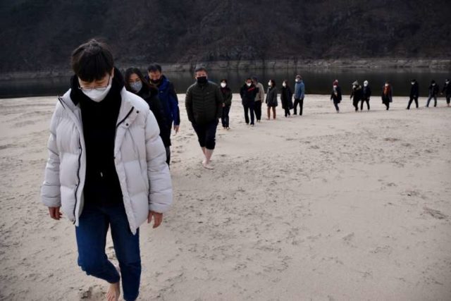 드넓은 모래톱 저 먼 곳에는 독수리와 고라니가 옹기종기 모여 있습니다. 우리 사람 떼를 보자 고라니는 껑충껑충 뛰어 어디론가 사라집니다. 모래톱 곳곳에는 새와 짐승의 발자국이 선명하게 남아 있습니다. 녹조가 무성했던 갇힌 물을 흐르게 하자 바닥의 모래톱이 드러났고, 이곳이 온갖 철새와 주위 짐승의 평화로운 놀이터로 변했습니다. 새가 날아오고, 짐승은 뛰놀고, 물고기는 헤엄치는 낙동강에 우리 사람이 맨발로 유유히 모래톱에 걸을 수 있다는 희망을 직접 경험한 시간이었습니다.
