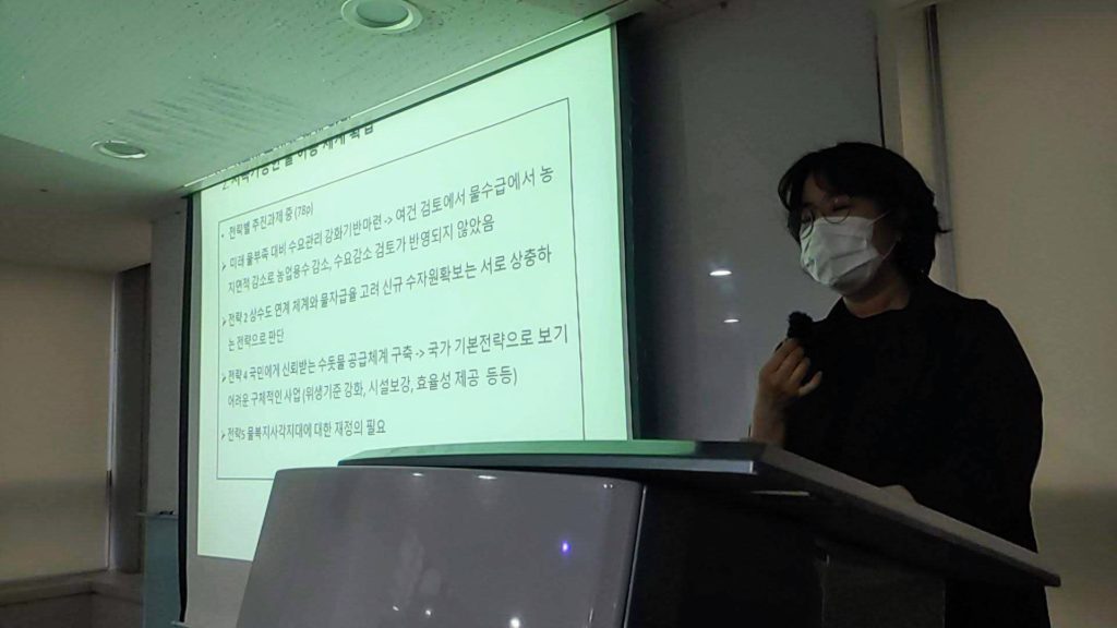 두 번째 토론자인 유진수 금강유역환경회의 사무처장은 물관리에서 가장 중요한 ‘맑고 깨끗한 물의 확보’라는 목표가 현재 공개된 국가물관리기본계획에서 나타내고 있는 자료 만으로는 충분히 그려지지 않는 다며, 계획 상의 자료가 조금 더 상세하고 풍부해야 한다고 지적하였다. 또한 정부가 그리고 있는 통합 물관리의 미래상이 조금 더 구체적으로 그려져야 한다고 얘기했다. 더하여 유진수 처장은 국가물관리기본계획이 참여와 소통을 중시한다면, 이것이 실제적으로 이루어질 수 있도록 제도적인 지원의 근거라거나 예산의 투자가 이루어져야 할 것이라고 주장했다.